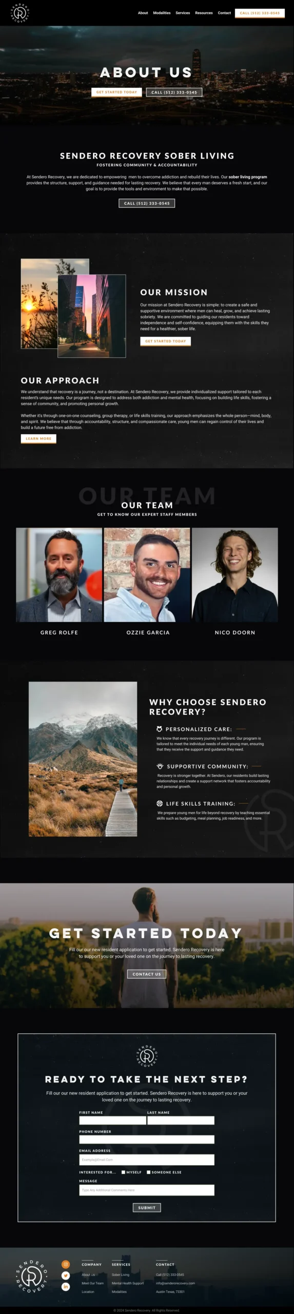 Sendero Recovery is a men’s sober living program based in Austin, Texas, offering structured support for individuals working toward long-term sobriety and mental wellness. Their program combines sober living with recovery support, life skills training, active recovery activities, and clinical oversight. They create a strong sense of community for men who are ready to rebuild their lives in a safe, supportive environment. Sendero came to us without an existing website, so we had the opportunity to build something from the ground up that reflected their mission and made it easy for people to learn more and get connected.
